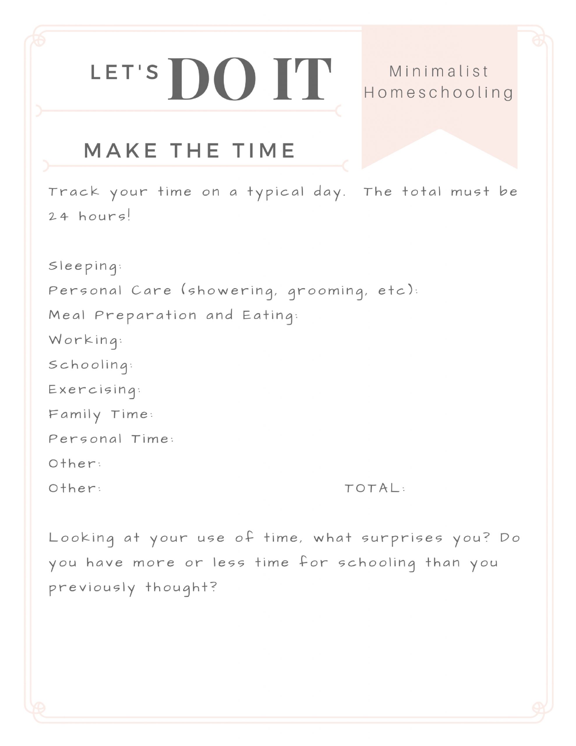 Once you’ve identified how you spend your time, you will know exactly how much time you have to homeschool.  Now, make sure that the schoolwork you have decided to use can fit in that time!